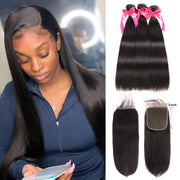 HD Lace Closure 5x5 With Bundles Straight Weave Virgin Human Hair Bundle Deals